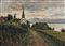 BRANCACCIO CARLO (1861 - 1920) Paesaggio con chiesa. . 1905. Olio su tela ....