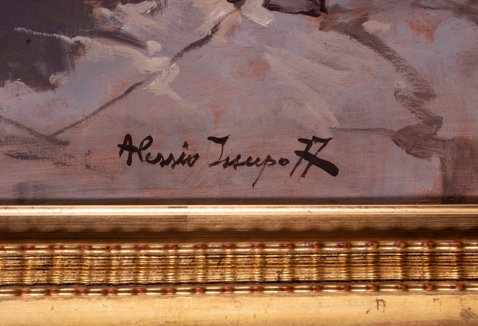 ISSUPOFF ALESSIO (1889 - 1957) Horses and peasants. . Oil on canvas . Cm 100,00 x 70,00. Signature lower. Cornice presente