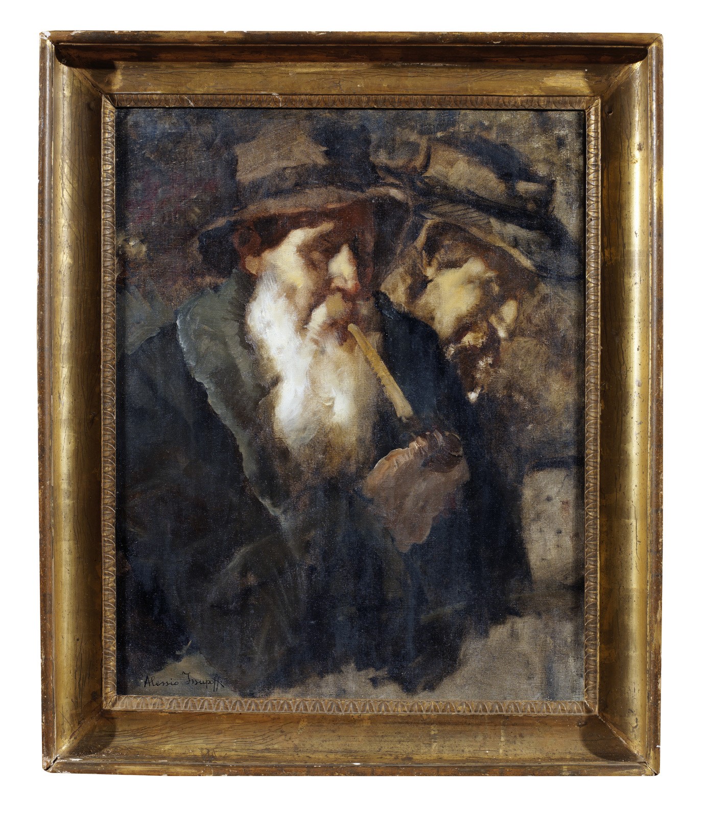 ISSUPOFF ALESSIO (1889 - 1957) Ritratto di fumatori. Olio su tela . Cm 49,00 x 63,00. Firmato in basso a sinistra. . Cornice presente