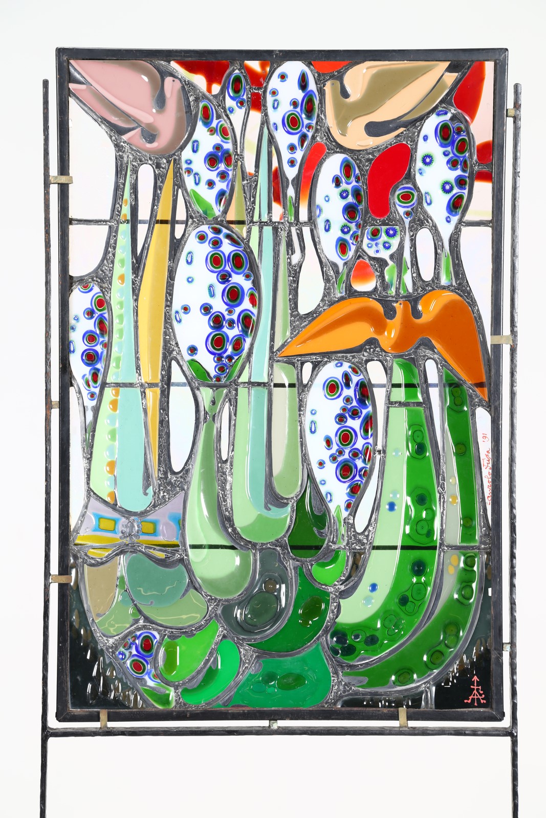 FUGA ANZOLO Pezzo unico. Fiori e uccelli. . Cm 60,00 x 90,00. Scultura in vetro su supporto in ferro battuto, firma e data presente 1991. Provenienza eredi Anzolo Fuga. Per la scheda completa si prega di consultare il nostro sito, www.capitoliumart.it FUGA ANZOLO Single piece. Flowers and birds. . Cm 60,00 x 90,00. Glass sculpture on wrought iron support. Signature and date, 1991. Coming from the heirs of Anzolo Fuga. For the complete card please consulting www.capitoliumart.it