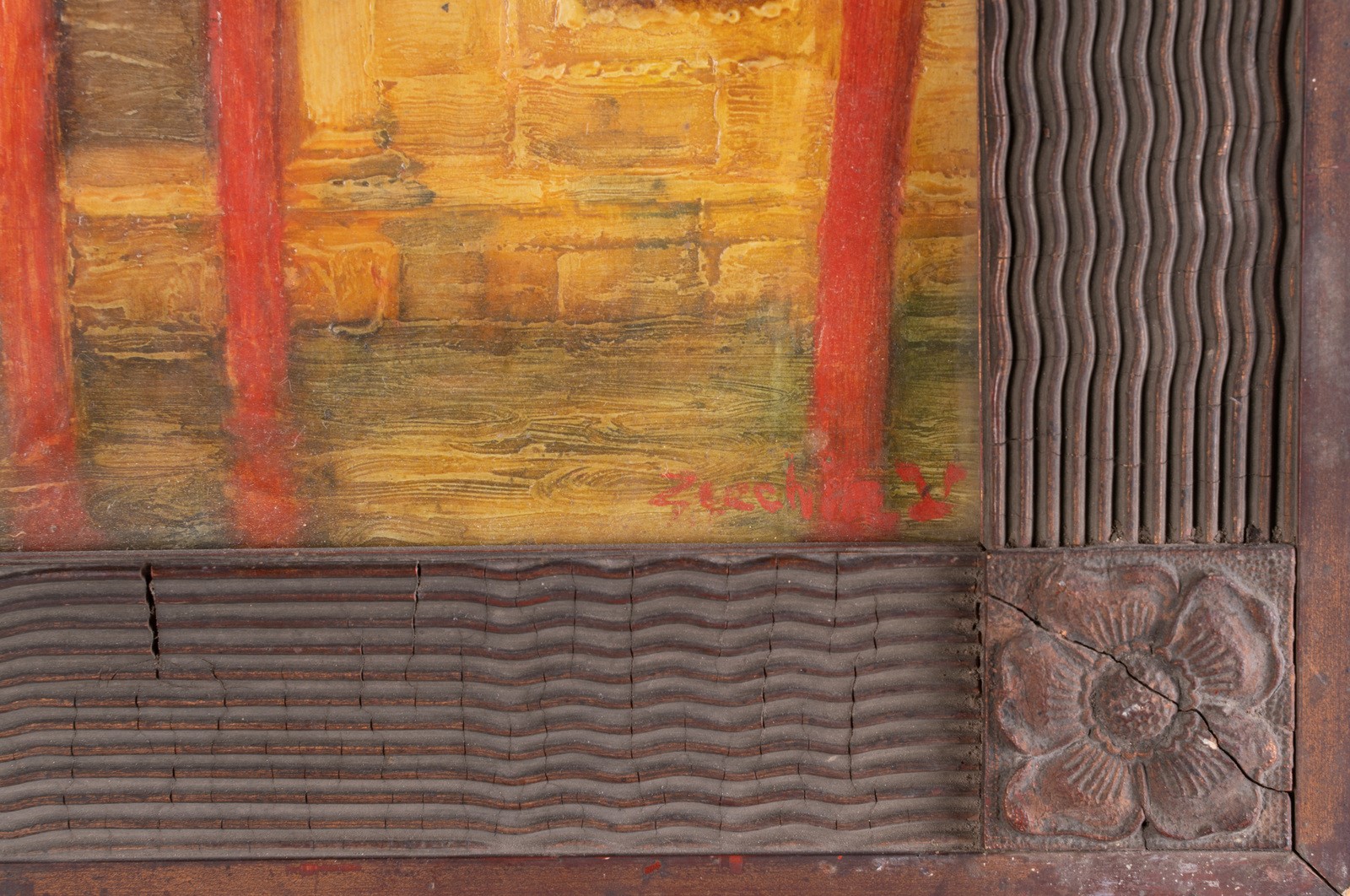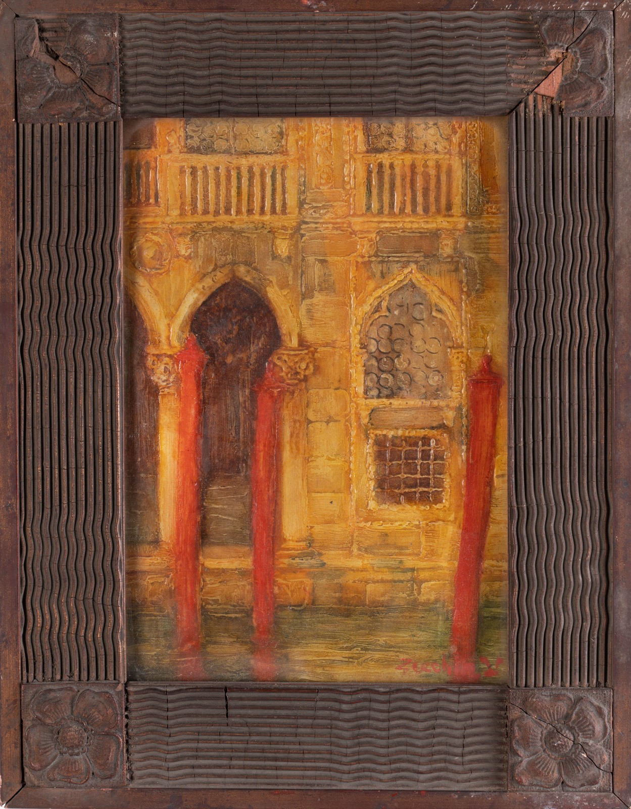 ZECCHIN VITTORIO (1878 - 1947) Detail of the facade of Ca' D'oro after the Franchetti restoration. . Oil on Masonite. Cm 16,50 x 22,50. Provenance: The artist's gift to the friend Amedeo Fuga. For inheritance to the actual owner. Signature lower right. In coeval frame. For the complete card please consulting www.capitoliumart.it . Cornice presente