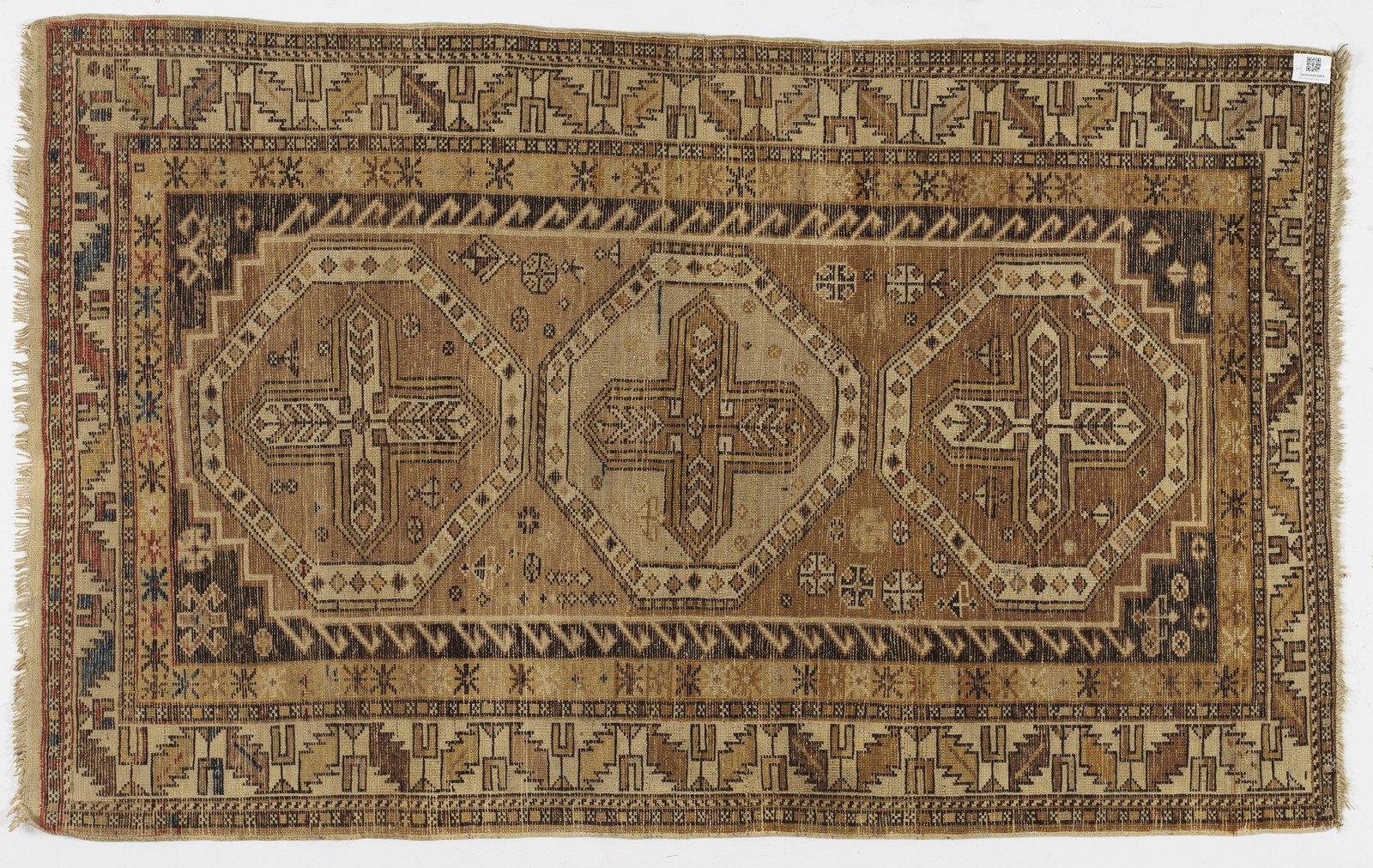 SHIRWAN Tappeto Shirwan, Caucaso, primi '900. . . Cm 110,00 x 182,00. Shirwan a medaglioni. Lana su lana. Abrash nella parte superiore. Ottimo stato di conservazione.