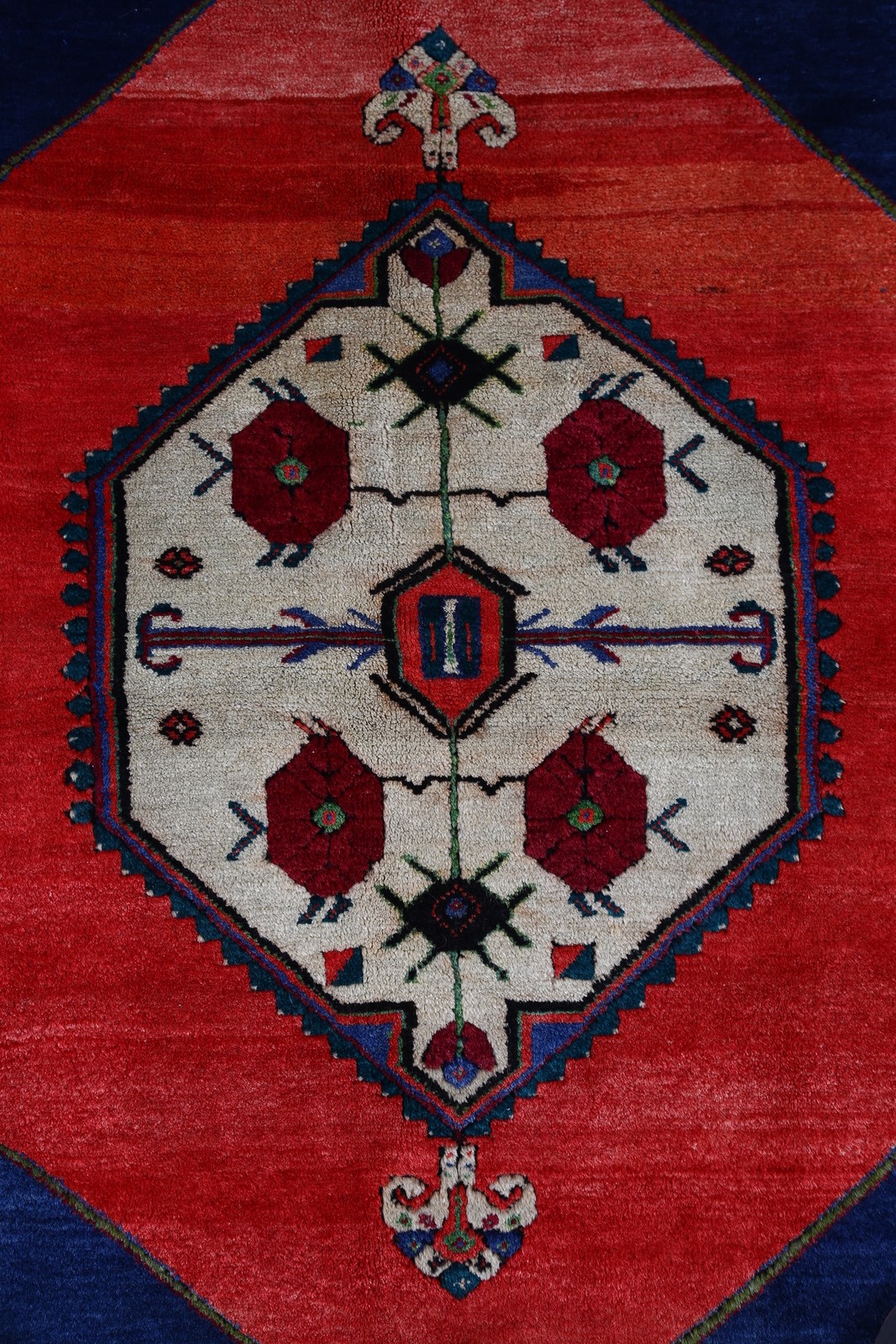 TASHPINAR Carpet, center Anatolia, '30s-'40s. . Cm 128,00 x 179,00. The village of Tashpinar is located on the secondaryroad to Nigde, there are produced mainly carpets of format Ceyrek and Sajjade, processed in the houses. The oldest specimens are distinguished from the most recent ones by the high quality of the wool and the fine knotting, done in a very accurate way. Typical are the carpets with elongated, almost oval medallions, whose interior designs stand out clearly. Among the dominant colors are the shades of red and blue. Bibliography of reference: K. Zipper, C. Fritzche, U. Jourdan, tappeti orienali turco-turcomanni, Ed. Sonzogno.