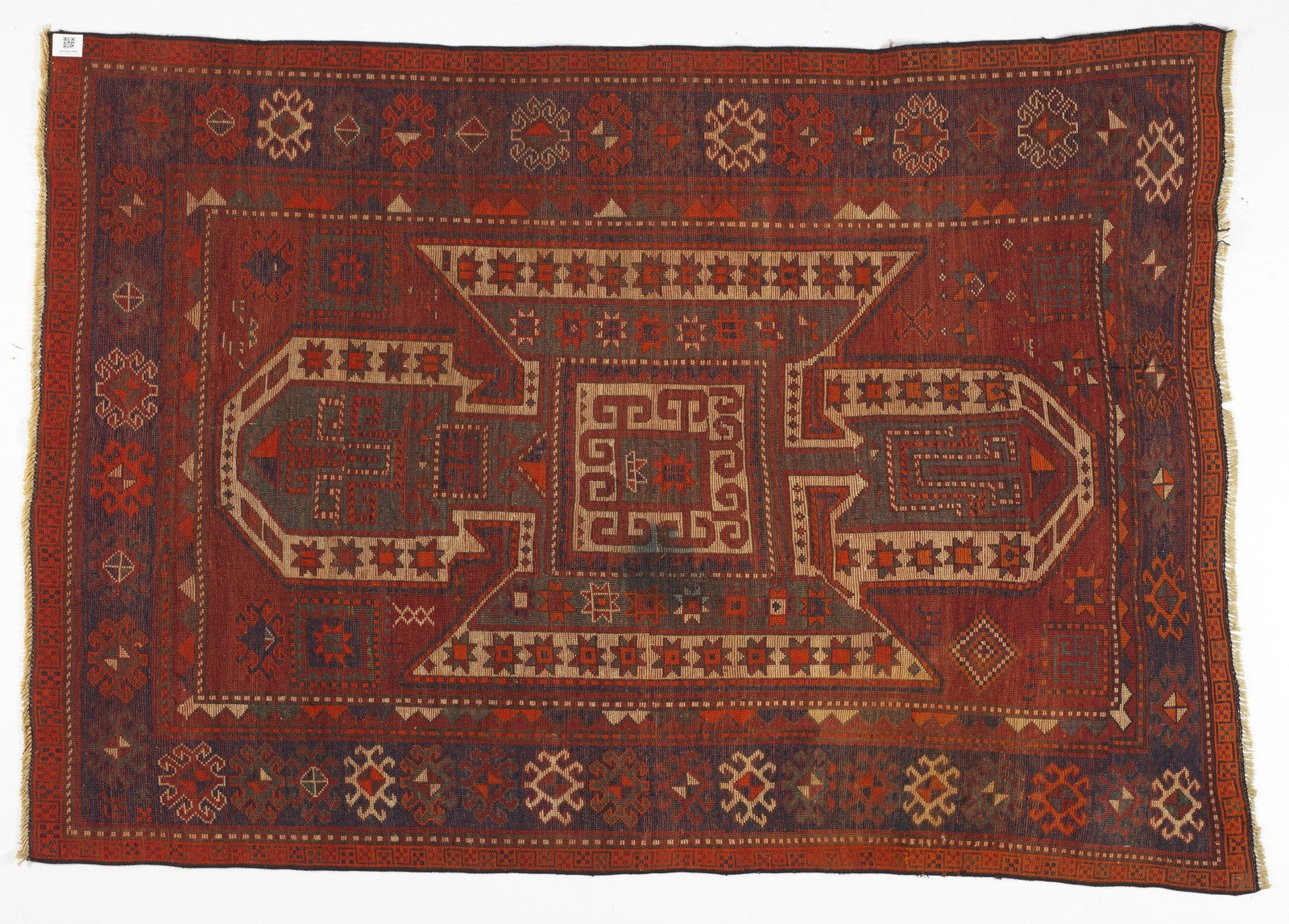 KAZAK SEWAND Tappeto Kazak Sewand, fine '800. . Cm 147,00 x 214,00. Kazak a scudo, sottogruppo dei Kazak Sewan. Lana su lana. Ottimo stato di conservazione.