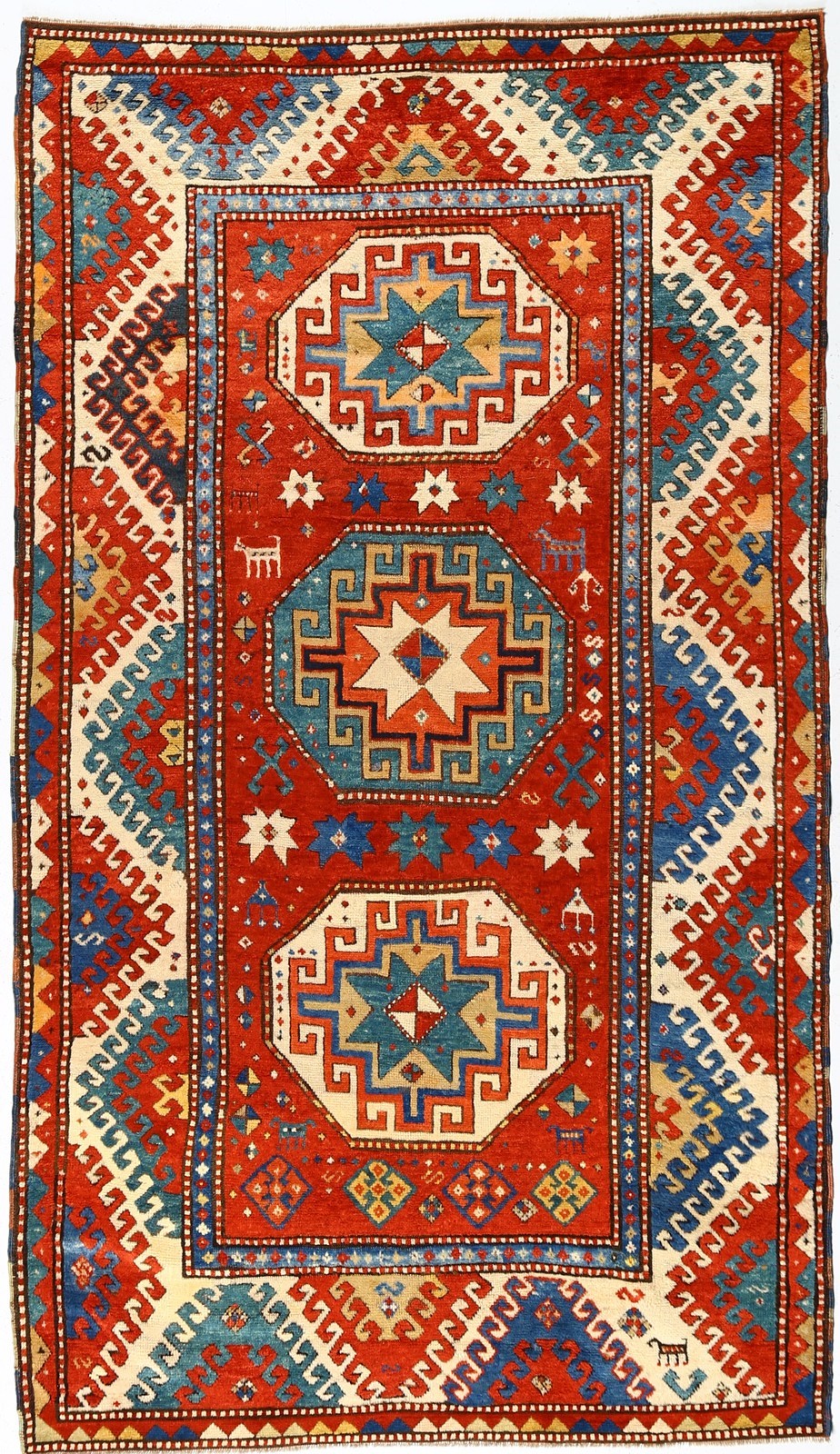 KAZAK Bordjalu carpet, end 1800. . Cm 151,00 x 261,00. Fat wools, full of wool. Bibliography of reference: K. Zipper, C. Fritzche, U. Jourdan, Tappeti orientali turco-turcomanni, Ed. Sonzogno.