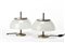 Coppia di lampade da tavolo modello "Alfetta". Produzione Studio Artemide, 1966. Ottone nichelato e vetro stampato opalescente. (h cm 28) (lievi difeti e parziale mancanza della parte elettrica)