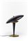 Lampada da tavolo in ottone e alluminio laccato nero. Paralume a calotta...