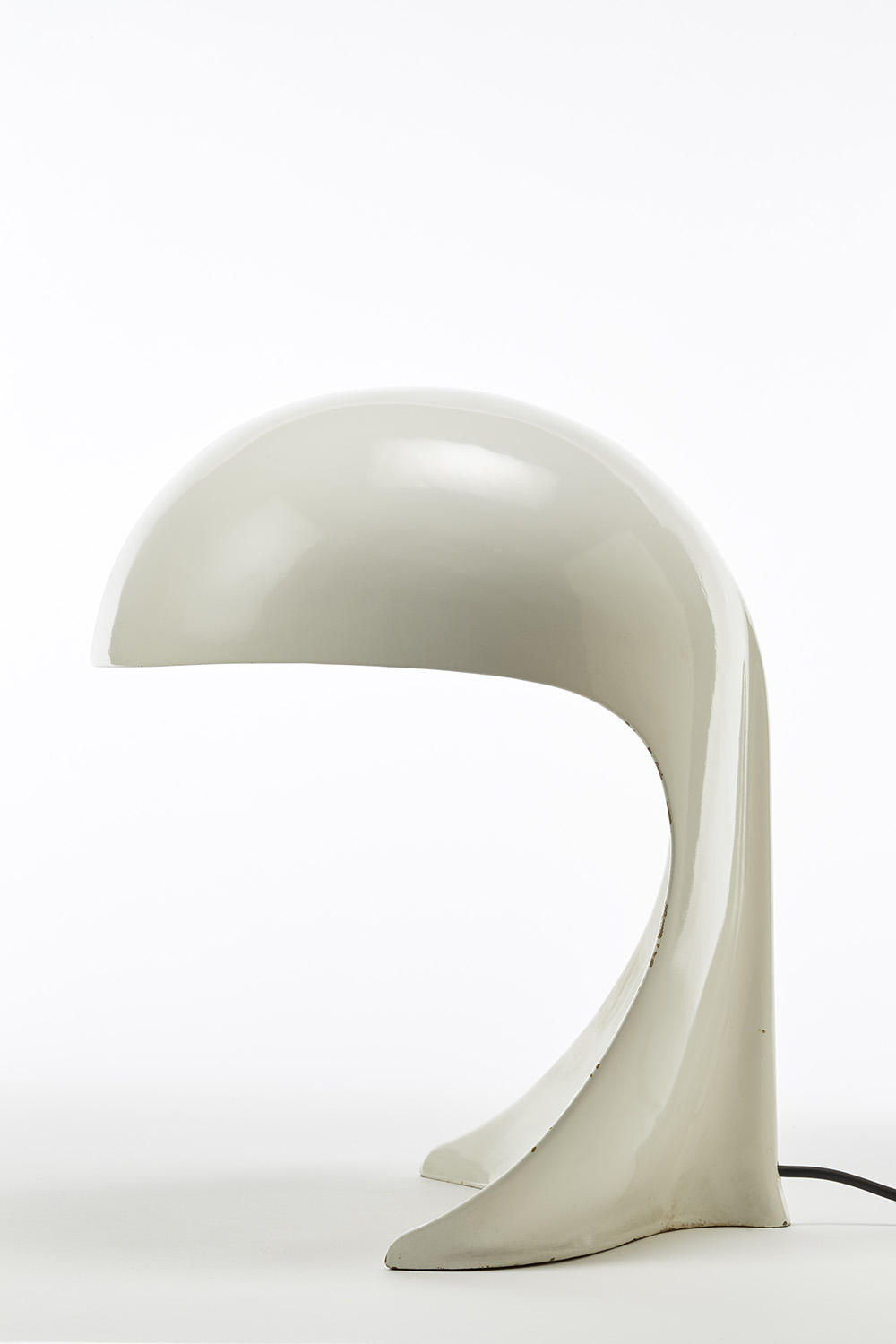 Lampada da tavolo modello "Dania". Produzione Artemide, MiIano, 1969. Fusione di alluminio laccato bianco. (cm 34x41x34) (lievi difetti)