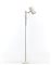 Lampada da terra modello "365". Produzione O-Luce, Milano, anni '50. Struttura in profilato e tondino di ottone, snodo regolabile e paralume cilindrico in alluminio laccato bianco, base in fusione metallica laccata bianca. (h cm 160) (lievi difetti)