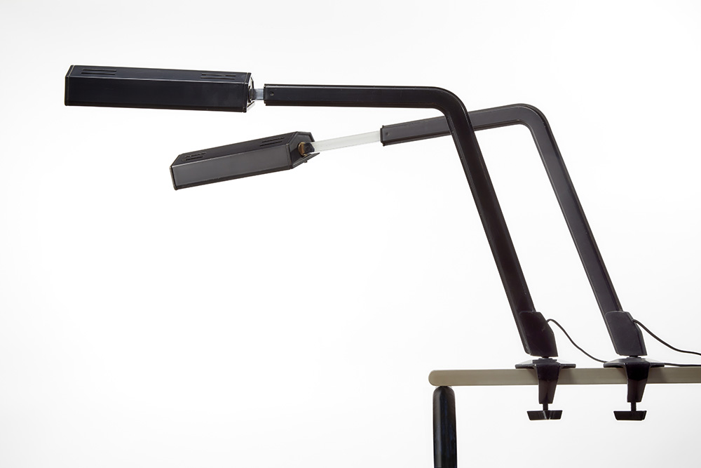 Coppia di lampade con braccio allungabile della serie "Arco". Produzione Olivetti, Ivrea, 1963. Fusione di alluminio e lamiera di acciaio verniciata nera. (l max 101x46) (lievi difetti)