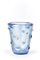 Grande vaso a bugne in vetro soffiato azzurrino trasparente fortemente iridato sulla superficie esterna. Anni '30/'40. (h cm 29; d cm 24,5) (lievi difetti)