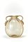 Vaso biansato costolato in vetro soffiato trasparente pagliesco, iridato sulla superficie esterna. Variante costolata del disegno "1964". Esecuzione Cappellin Venini, Murano, anni '20. (h cm 30)