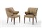Coppia di poltroncine da camera imbottite con gambe rastremate in legno di mogano massello e rivestimento in tessuto di seta a righe beige e verdi. Cantù, fine anni '40. (cm 55x80x60) (difetti)