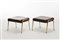 * Coppia di sgabelli. Produzione Officine Valsecchi Milano, Milano, 1957. Gambe in alluminio ottonato, struttura in legno e seduta in gommapiuma rivestita in skai marrone. (cm 55x38x47) (lievi difetti)