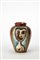 Ceramic vase modeled on a lathe glazed in brown with two polychrome panels depicting respectively a man and a woman. Montelupo, 1985. Signed and dated in black under the base. (h 30 cm.) (slight defects)