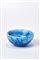 Ciotola in ceramica smaltata a colature celesti verde, nero e blu sotto vetrina craquelé. Vietri, anni '50. Firmato sotto la base con il simbolo grafico dell'asinello. (h cm 6; d cm 13,5)