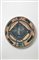 Ceramic plate decorated in polychrome with a geometric mask. Manufacture of Ceramiche S. Giorgio, Albisola, 1981. Signed and dated at the base and at the verso. (d 51 cm.)