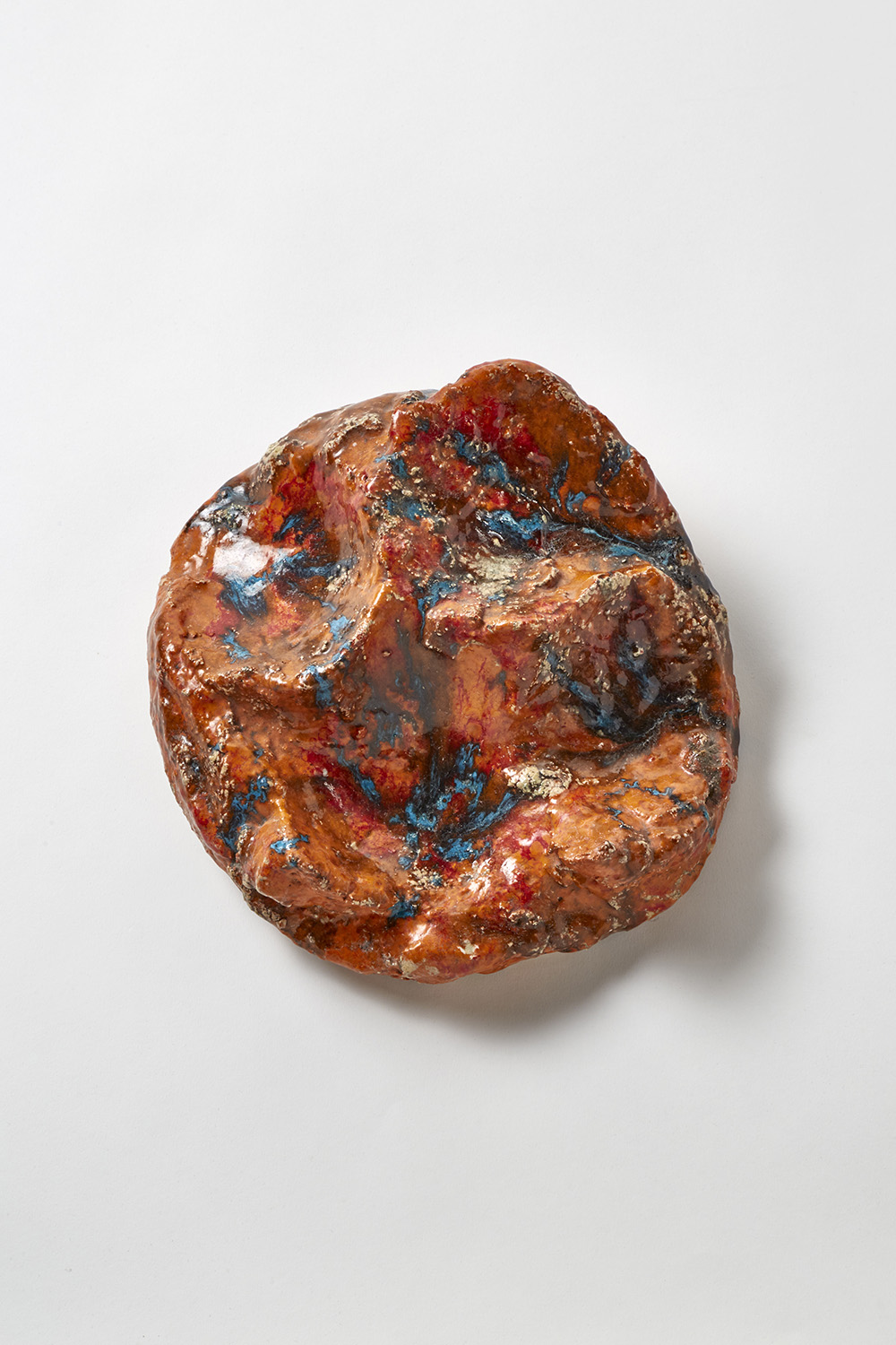Hand-molded and glazed ceramic in red and light blueshades. Albisola, 1962. Signed and dated on the verso. (21x9x24 cm.) (slight defects)