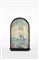 Formella in ceramica a rilievo smaltata in policromia e a lustri metallici inserita in edicola in legno dipinto. Faenza, anni '30/'40. (cm 14,5x25x3,5) (lievi difetti)
