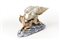 Polychrome glazed ceramic group under glass display, with metallic and gold luster, depicting an eagle grabbing a deer. V.B.C.M. Milan, 1920s. Marked under the base with the graphic symbol "V.B.C.M". (40x23x14 cm.) (defects and losses)