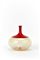Vaso della serie "Bolle". Venini, Murano, anni '80. Vetro soffiato a incalmo pagliesco e rosso. Firmato a punta sotto la base "Venini italia". (h cm 20)