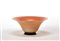 Ciotola della serie "Aurati". Murano, 1992. Vetro "Laguna" incamiciato rosa con applicazione di foglia d'oro, base in vetro trasparente ambrato applicata a caldo. Disegno n°500.2. Iscritto a punta sotto la base "venini 92". (h cm 12,3)