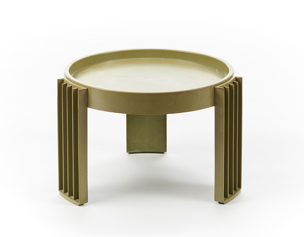Tavolino modello "Marema". Produzione Cassina, Milano, 1967. Plastica verde chiaro. (h cm 28; d cm 42,5)
