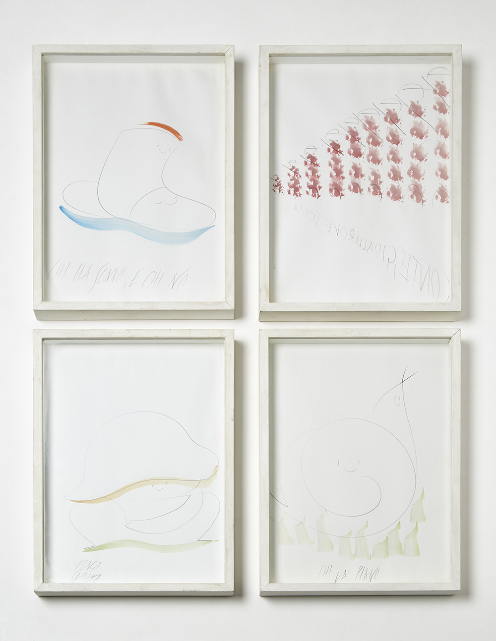 Lotto composto da quattro tecniche miste su carta (cm 28,5x20). In cornici. (lievi difetti)