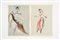 Pair of sketches for theatrical costumes. Rome, 1954. Mixed technique on paper glued on cardboard bearing sketches, inscribed and dated on the verso. (45.5x30 cm.) (slight defects)
