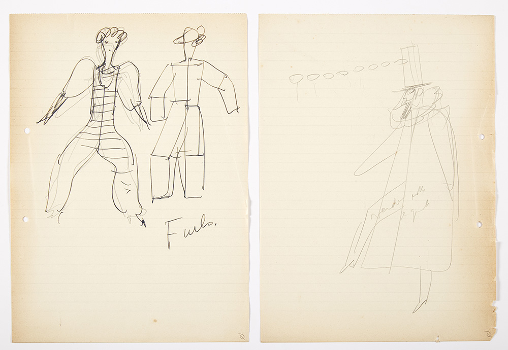 Due fogli recanti schizzi a matita per "Pulcinella" di Igor Strawinsky. Milano, 1939ca. Grafite e inchiostro nero su carta. Recanti annotazioni autografe. (cm 30x21,5) (lievi difetti)