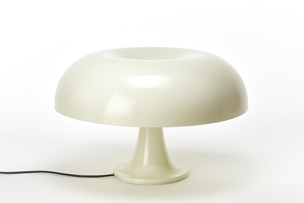 Lampada da tavolo modello "Nesso". Produzione Artemide, Milano, disegno del 1967, esemplare degli anni '90/2000. ABS bianco. Con etichetta del produttore sotto la base. (h cm 34,5; d cm 53,5) (lievi difetti)