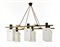 Lampadario a sei luci in ottone lucidato e laccato nero, alluminio laccato nero. Paralumi parallelepipedi in vetro incamiciato lattimo e acidato sulla superficie esterna. Italia, anni '60. Marcato sul vetro. (cm 106x65x66)