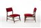 Pair of solid wood walnut armchair with padded seat and back covered with red velvet. Italy, 1950s. (51x72x63 cm.) (slight defects)