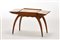 Cherry-wood work table with two-drawer wavy band, side liftable tabs concealing holder compartments, arched and tapered legs. Italy, 1910s. (79x51x37 cm.) (slight defects)