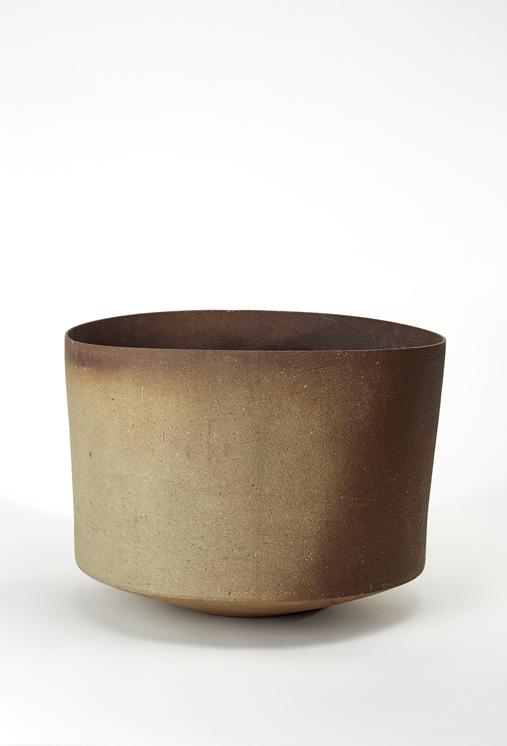 Grande vaso lavorato al tornio in terracotta greificata nei toni del bruno. Manifattura Ceramiche Arcore, anni '70. Marcato CA sotto la base. (h cm 36; d cm 49) (lievi difetti)