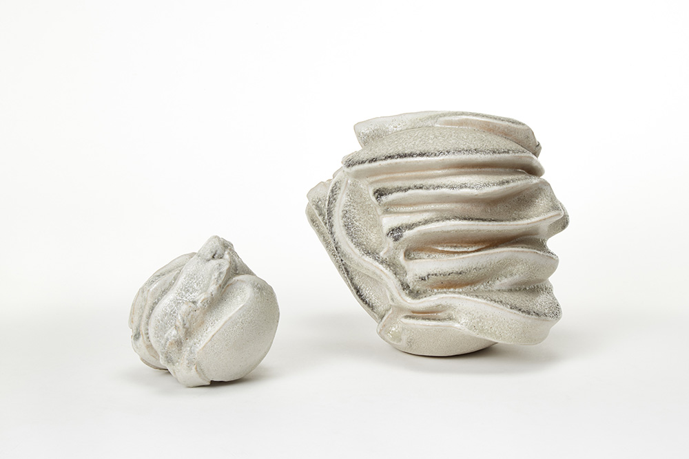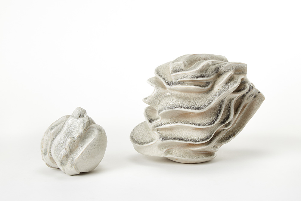 Carlo Zauli (1926 - 2002)Lotto di due sculture in ceramica smaltata in beige...