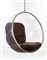 Poltrona appesa modello "Bubble Chair". Produzione Eero Aarnio Originals, Finlandia, disegno del 1968, esemplare degli anni '80/'90. Guscio in metacrilato trasparente con barra in acciaio cromato e cuscini imbottiti e rivestiti in stoffa marrone. Catena in acciaio inox. (cm 103x90x105) (lievi difetti)