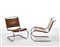 Coppia di poltroncine modello "MR 40". Probabile edizione Knoll, USA, anni '60/'70. Tubolare metallico curvato, cuoio color terra di Siena. (cm 58x75x89) (lievi difetti)