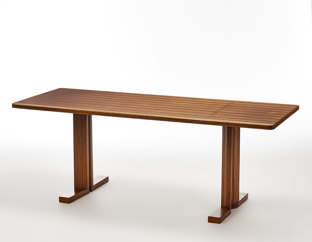 Tavolo in legno di teak massello. Nord Europa, anni '70. (cm 195x74x77,5) (lievi difetti)