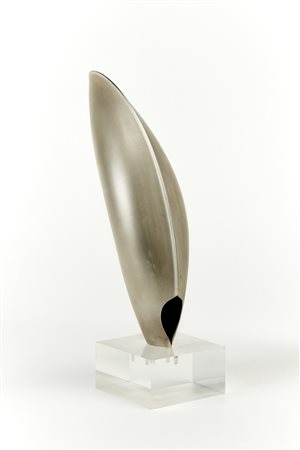 Prototype of sculpture in silver metal on a plexiglass base. Bregnano, 1970s. "Lino Sabattini" signature at the base. (h 39 cm (including the base)) (slight defects)