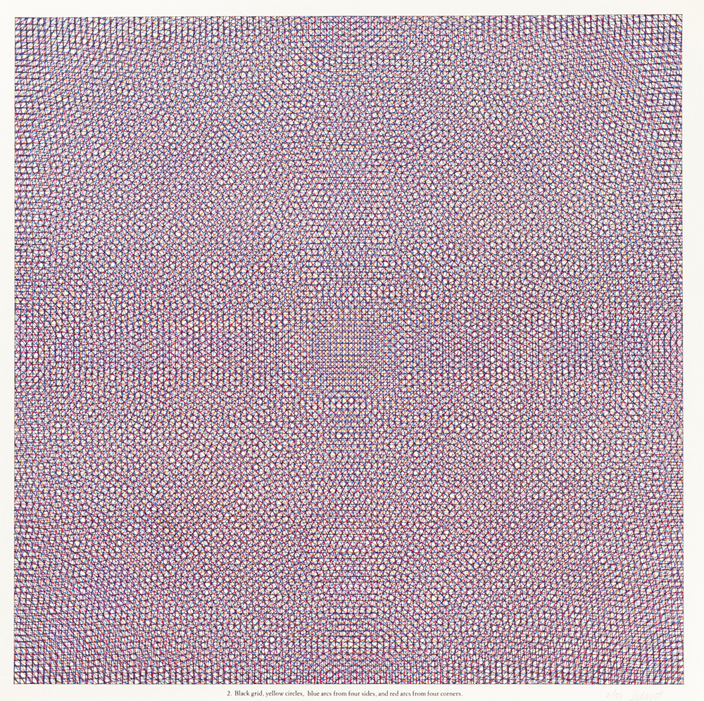 Lot 3 | Sol Lewitt 1928 - 2007 Black grid, yellow circles, blue arcs from four sides,...