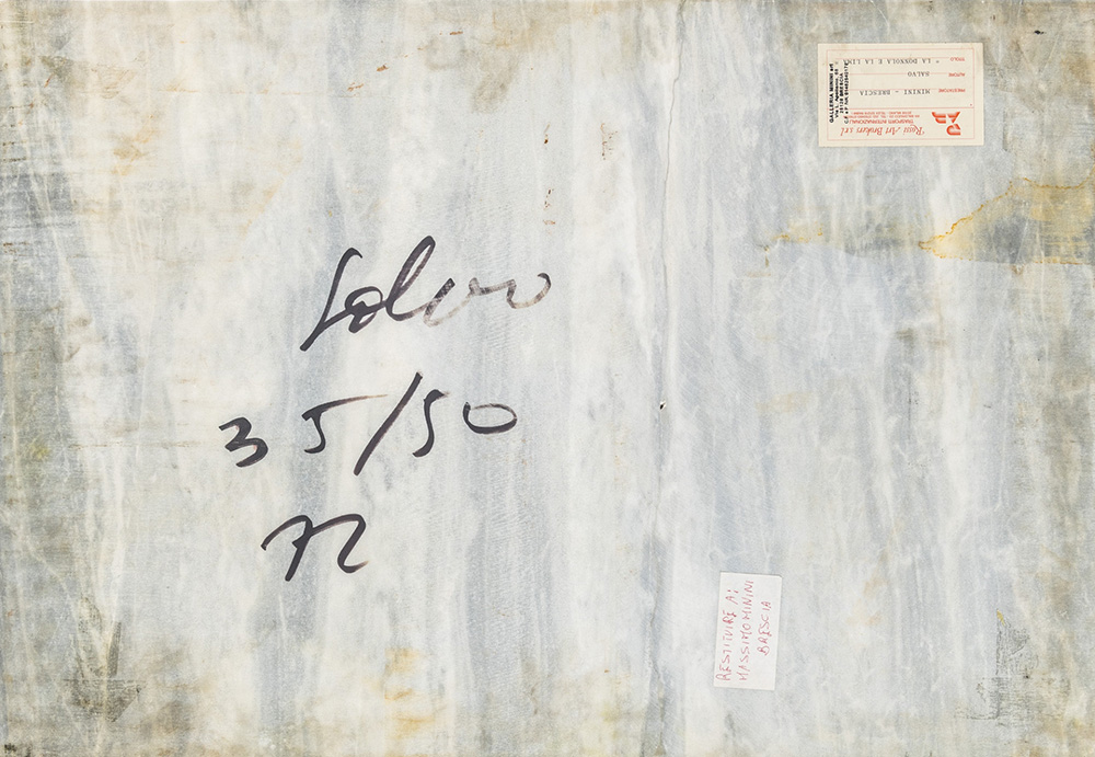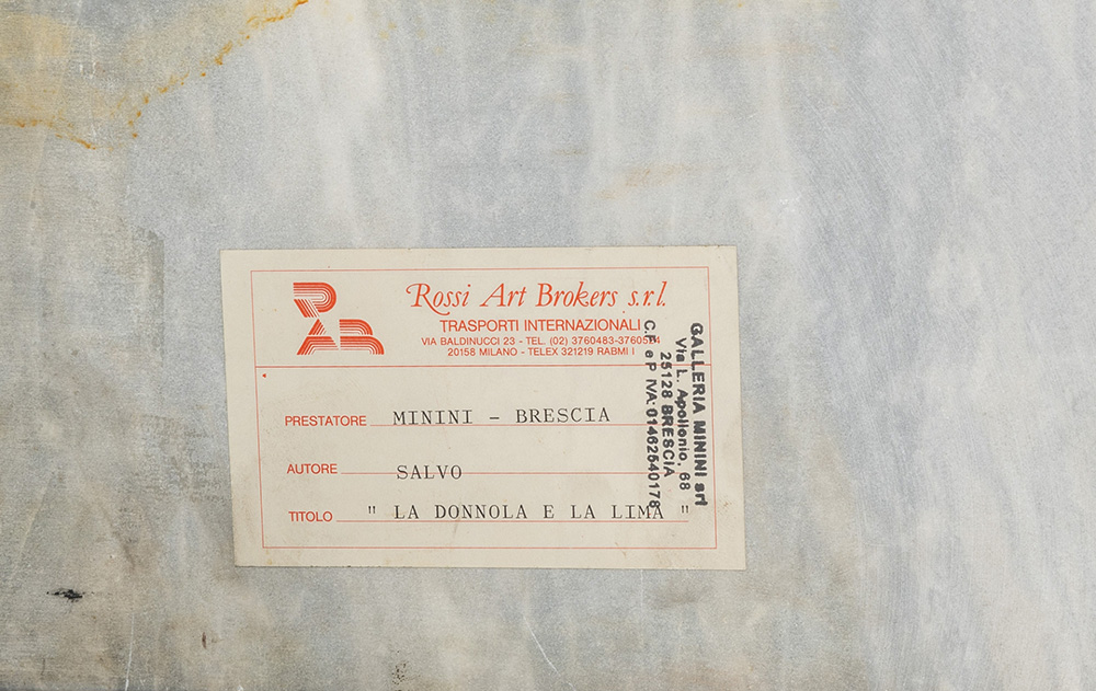 Salvo 1947 - 2015 La donnola e la lima - 1972 tecnica Multiplo, lastra in marmo incisa e dipinta Dimensioni cm. 45 x 65 Firma Firmato e datato sul retro Note Opera n. 35/50 Timbro Galleria Minini srl, Brescia sul retro Opera restaurata Provenienza Collezione Privata