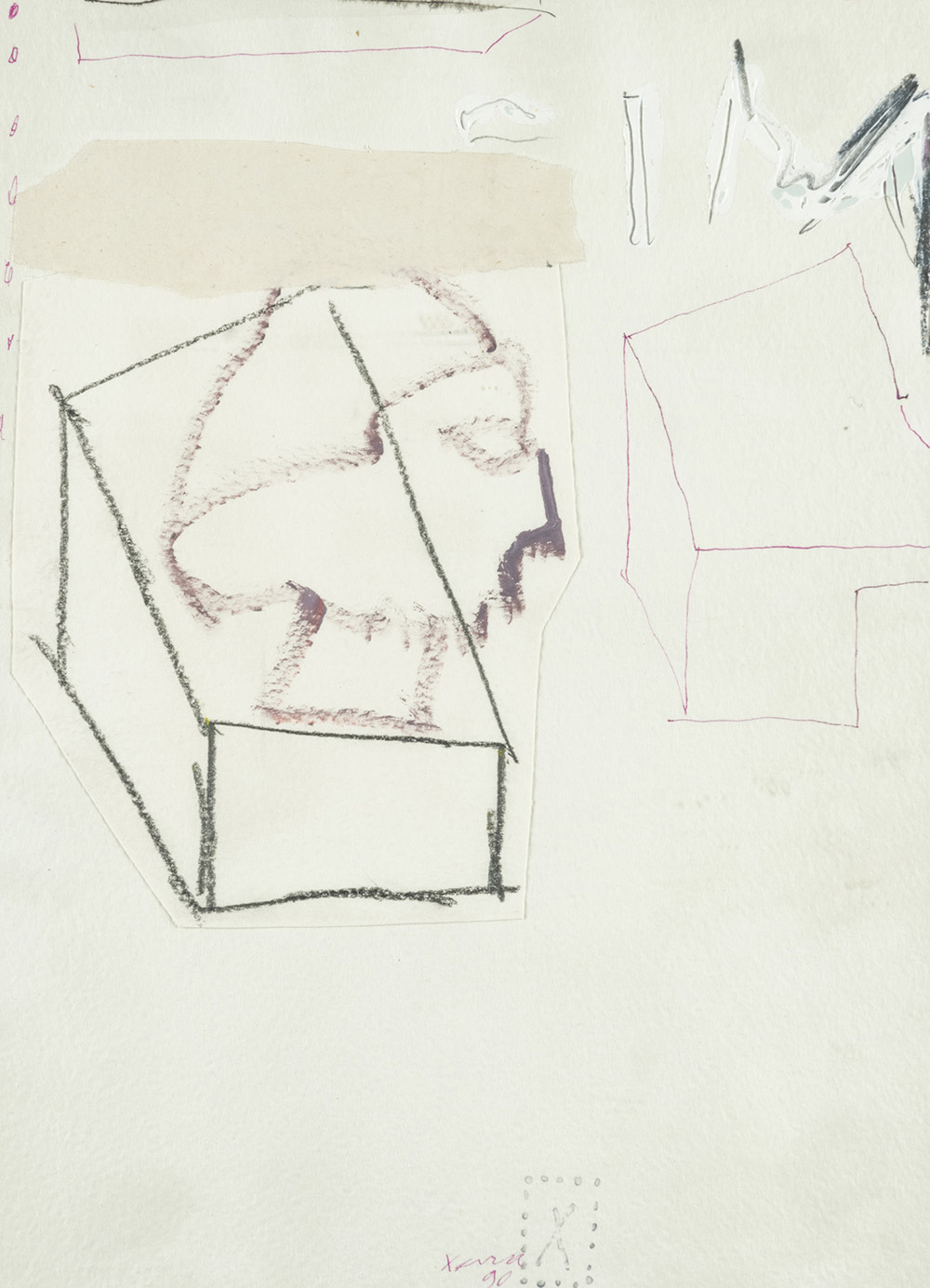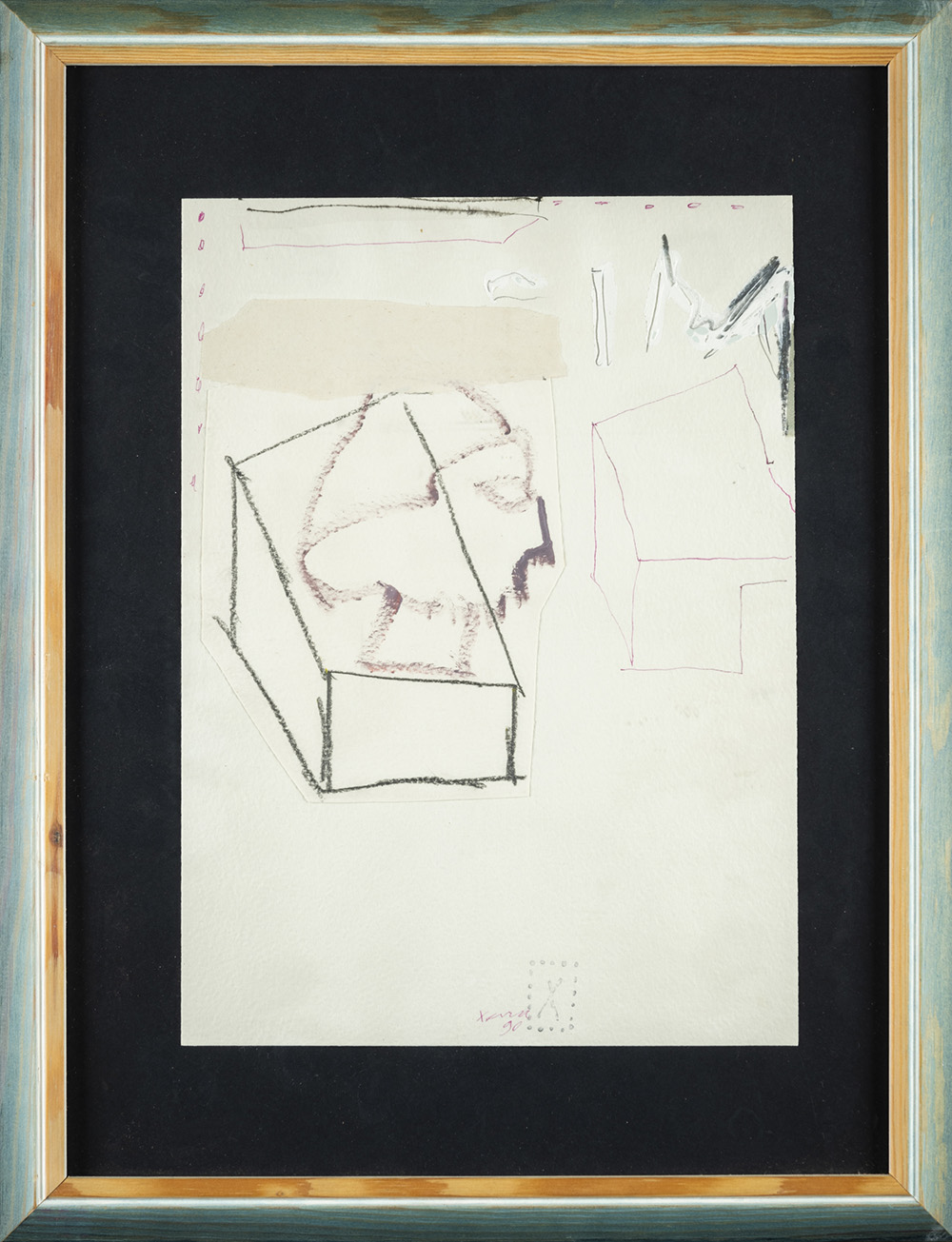 William Xerra 1937 Senza titolo - 1990 tecnica Tecnica mista e collage su carta Dimensioni cm. 29,5 x 21,5 Firma Firmato e datato in basso al centro Note Etichetta Multimedia Arte Contemporanea, Brescia sul retro Provenienza Galleria Multimedia Arte Contemporanea, Brescia Collezione Privata