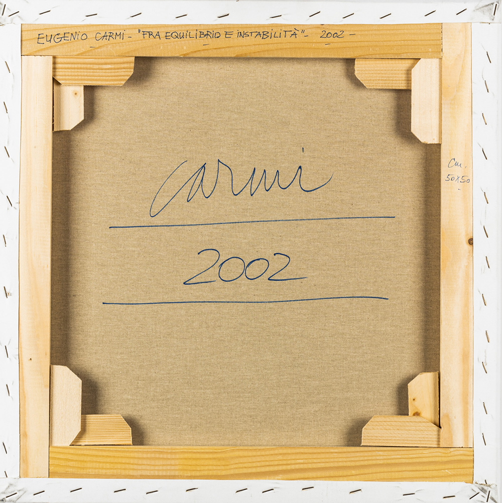 Eugenio Carmi 1920 - 2016 Fra equilibrio e instabilità - 2002 tecnica Acrilico su tela Dimensioni cm. 50 x 50 Firma Firmato e datato sul retro Provenienza Collezione Privata