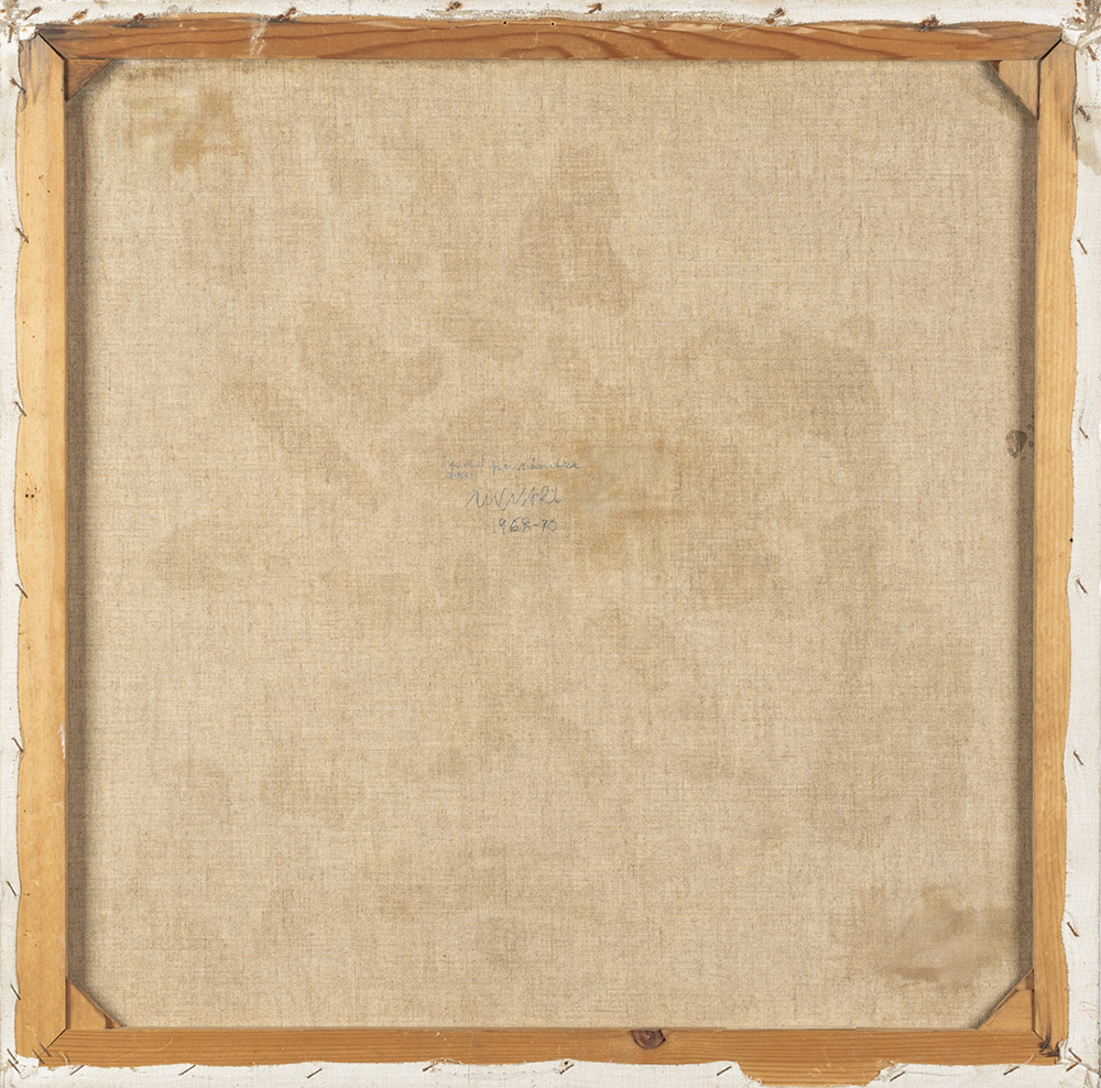 Bruno Munari 1907 - 1998 Negativo-Positivo - 1968-70 tecnica Olio su tela Dimensioni cm. 70 x 70 Firma Firmato e datato sul retro Documenti Certificato di autenticità a cura di Alberto Munari Note Etichetta Galleria Iolas, Milano sul retro Provenienza Collezione Privata