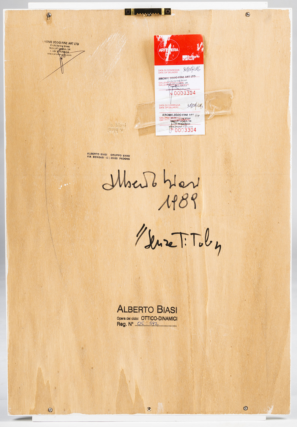 Alberto Biasi 1937 Senza titolo - 1989 tecnica Assemblaggio, tecnica mista su tavola, stoffa Dimensioni cm. 51,5 x 35 x 3 Firma Firmato e datato sul retro Documenti Certificato di autenticità a cura dell’Archivio Alberto Biasi, Padova Note Opera del ciclo Ottico-Dinamici Timbro Alberto Biasi sul retro Timbro Alberto Biasi Gruppo Enne, Padova sul retro Timbro Jerome Zodo Fine Art ltd, Londra sul retro Pubblicazioni “Alberto Biasi opere dal 1959 al 2013”, catalogo mostra Galleria Allegra Ravizza, Lugano (27 settembre - 26 novembre 2013), p. 77