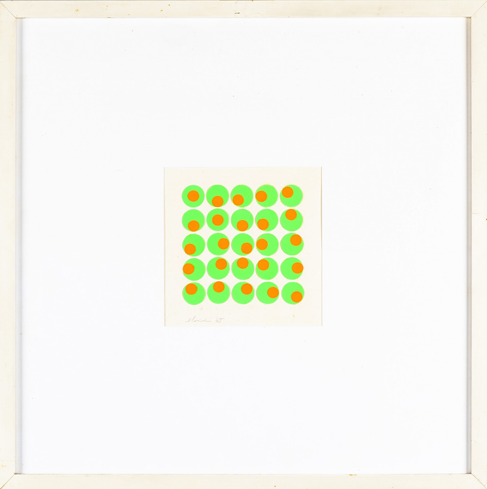 Edoardo Landi 1937 Senza titolo - 1965 tecnica Collage di cartoncini colorati su carta Dimensioni cm. 14 x 14 Firma Firmato e datato in basso a sinistra Provenienza Collezione Privata