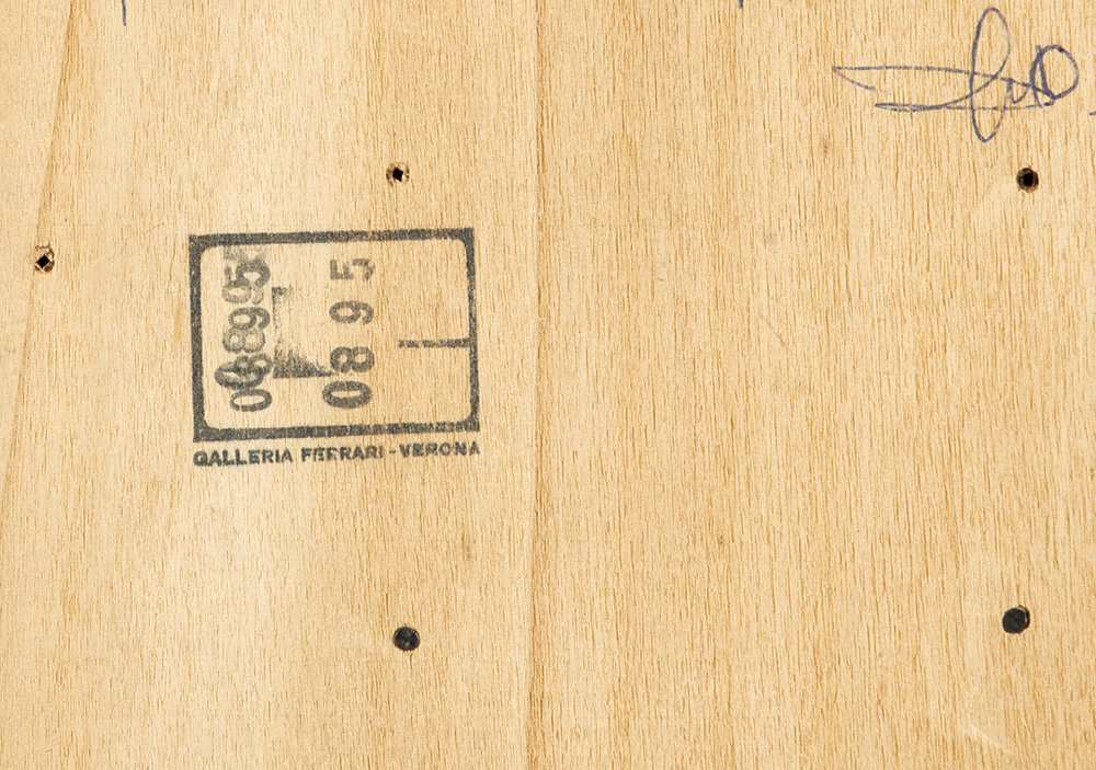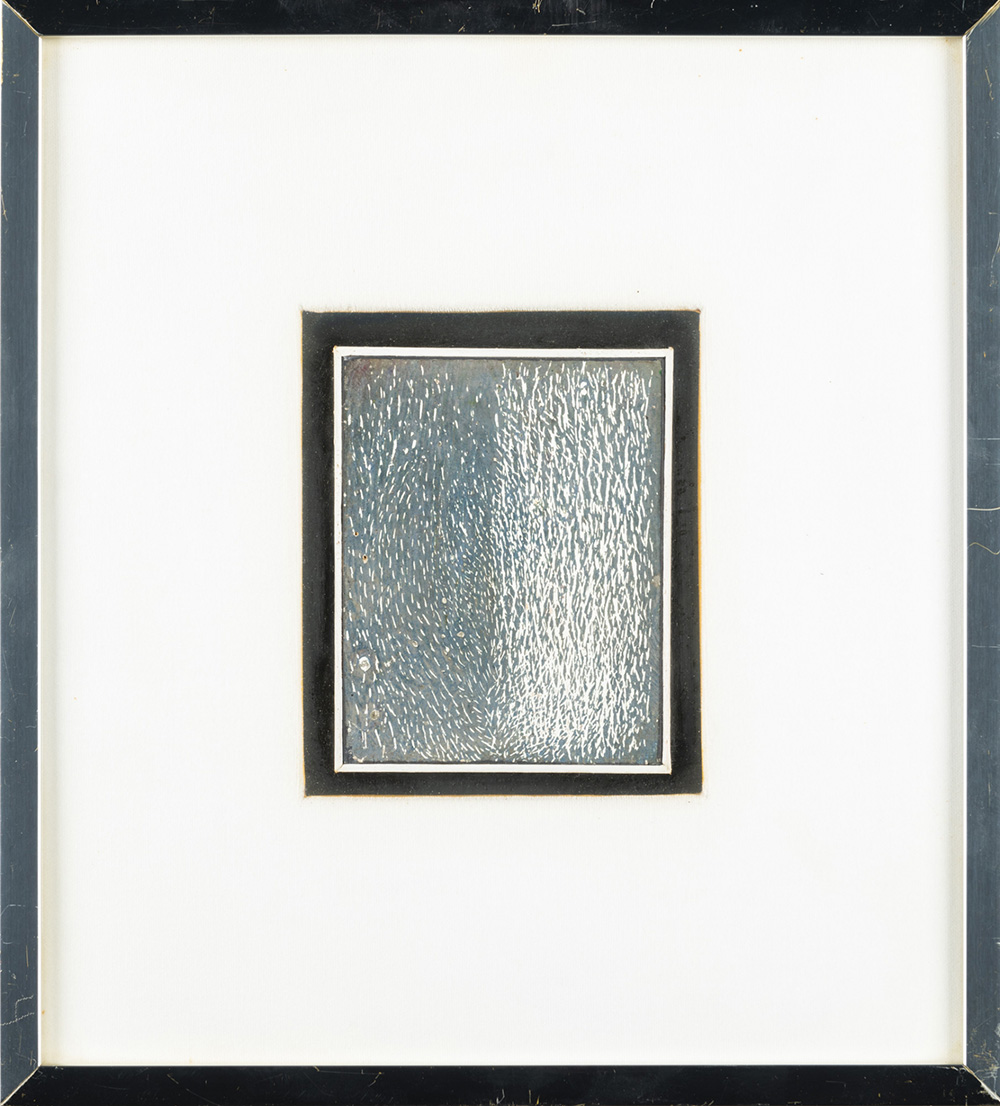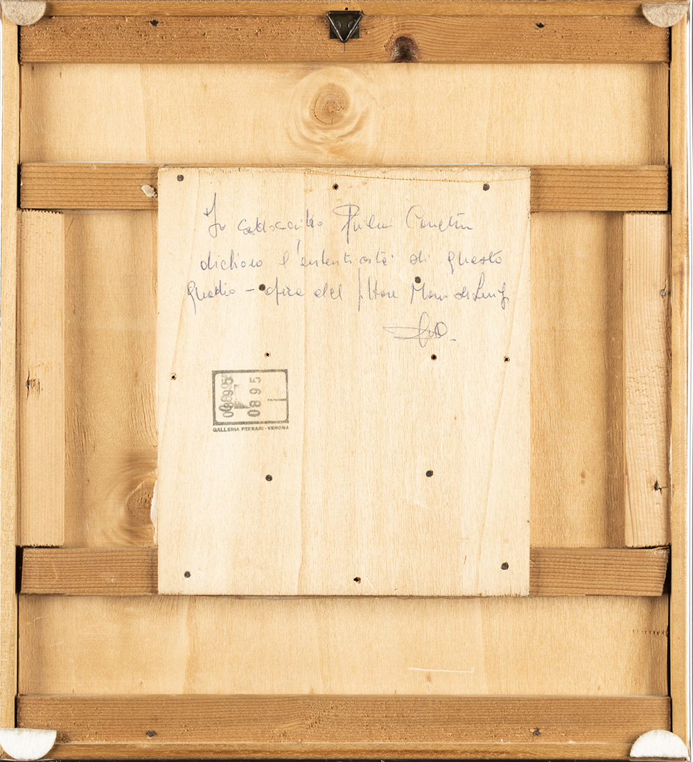 Mario Deluigi 1901 - 1978 Senza titolo tecnica Grattage su tavola Dimensioni cm. 12,5 x 10 Documenti Autentica su fotografia a cura di Caterina De Luigi Note Timbro Galleria Ferrari, Verona sul retro Provenienza Collezione Privata