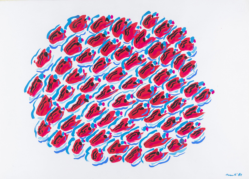Carla Accardi 1924 - 2014 Impronte rosso blu - 1983 tecnica Tempera su carta Fabriano Dimensioni cm. 50 x 70 Firma Firmato e datato in basso a destra Documenti Autentica su fotografia a cura dell’Archivio Accardi Sanfilippo, Roma Provenienza Collezione Privata