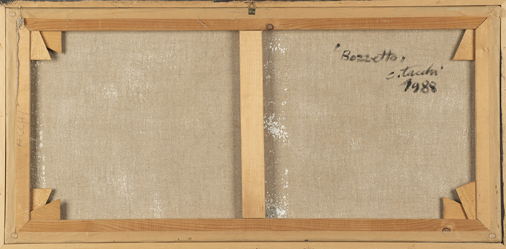 Cesare Tacchi 1940 - 2014 Bozzetto - 1988 tecnica Olio su tela Dimensioni cm. 44 x 92,5 Firma Firmato e datato in basso a destra Documenti Certificato di provenienza e garanzia Galleria Lombardi, Roma Provenienza Collezione Privata
